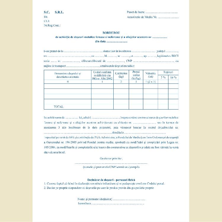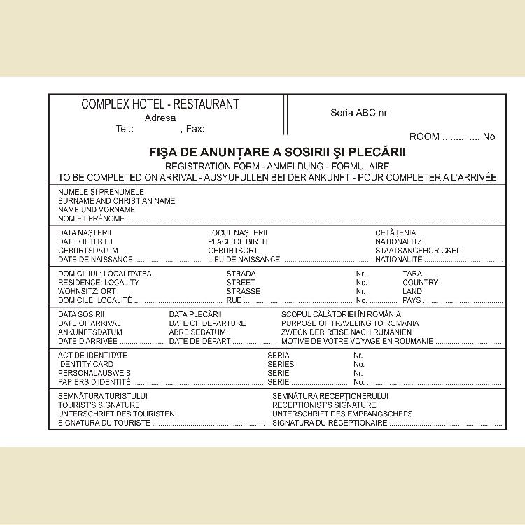 Realizăm formulare tipizate (facturiere, chitanţiere, aviziere, etc.) neînseriate sau înseriate, pe hârtie autocopiativă. Specificaţii - formularele tipizate se imprimă pe hârtie autocopiativă de 56gr. albă sau colorată Finisări - se pot înseria cu print - colile se pot riţui pentru a le rupe mai uşor - blocurile se capsează şi se broşează copertă din carton duplex biguit Utilizare - facturi - chitanţe - avize - monetar - recepţie hotel