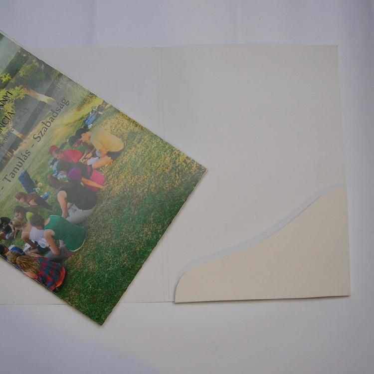 Mapele cu buzunar sunt ideale pentru conferinţe, prezentări produse, contracte, acte notari, etc. Specificaţii - mapele se realizează din carton de 300 gr. mat sau lucios Finisări - se poate infolia mat sau lucios pentru un aspect mai plăcut şi o rezistenţă crescută - se pot realiza cu un big sau două la cotor - buzunarul poate fi cu suport de cărţi de vizită Utilizare - conferinţe - portofoliu - târguri, expoziţii - birouri notariale şi de avocatură - instituţii de finanţare şi asigurări